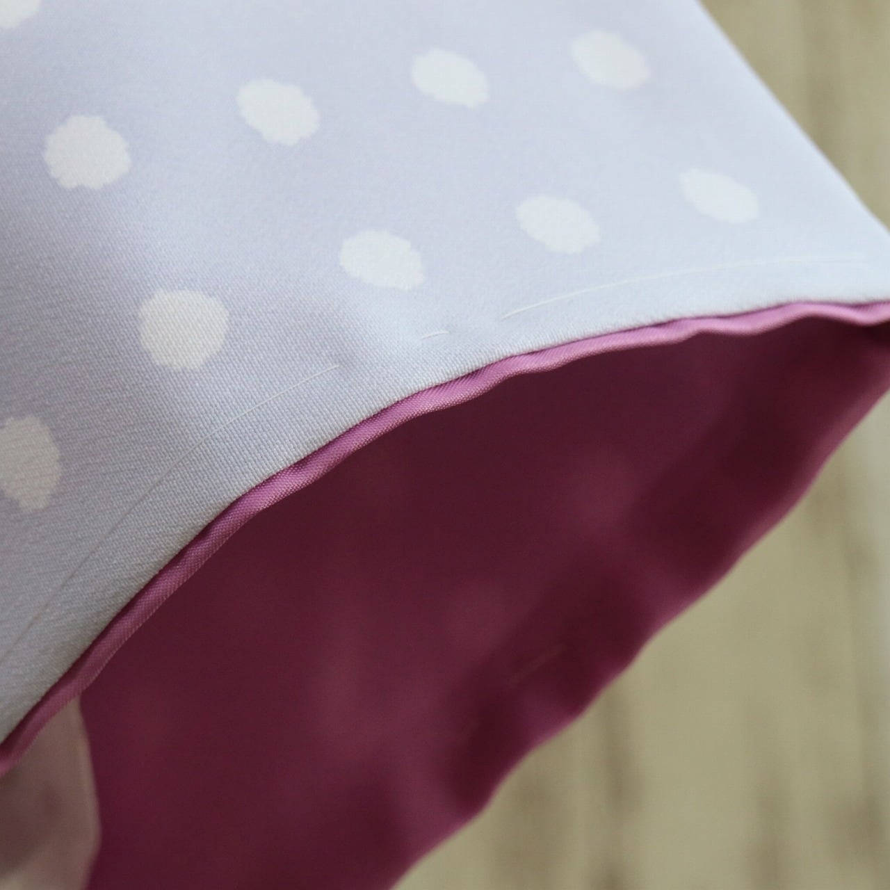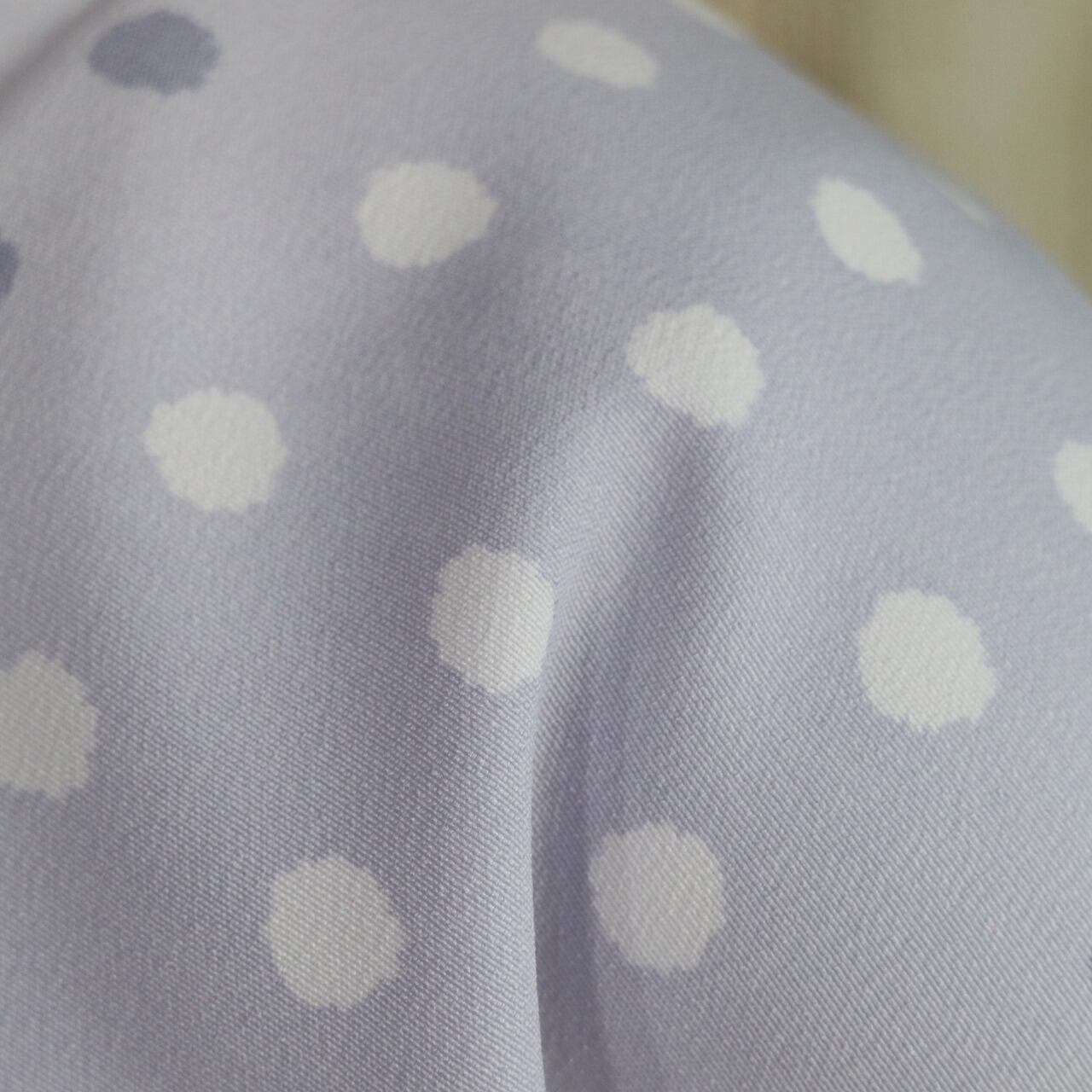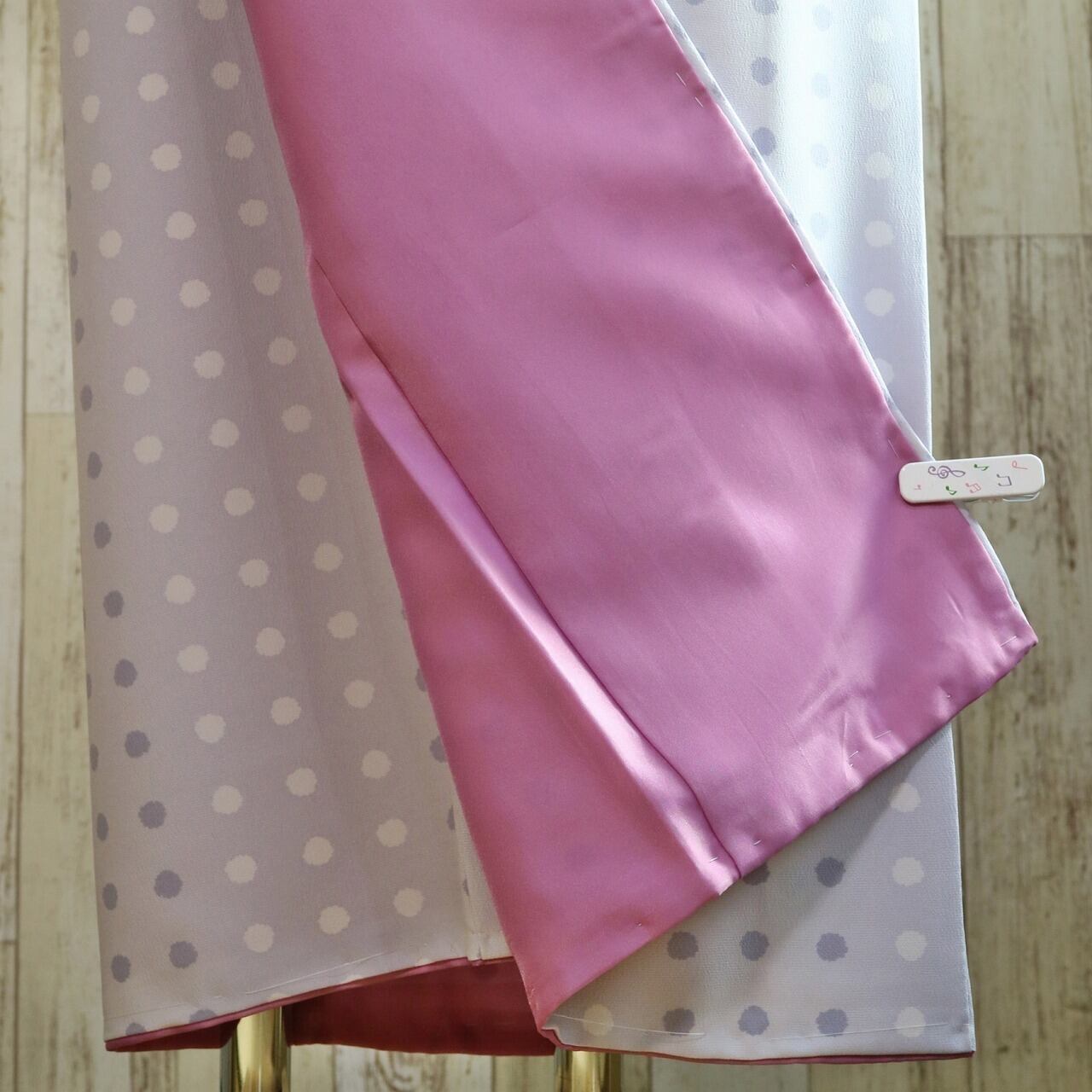 縦にならんだ ドット柄とやわらかな藤色は、おとなっぽい可愛らしさがある着物です。