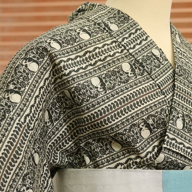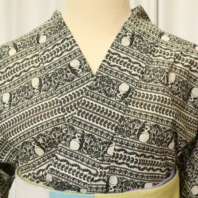 ★レディース浴衣 「スカル」 ~ローブジャポニカ製~ フリーサイズのみの販売となり、画像にコーディネートされたその他の商品は含まれません。