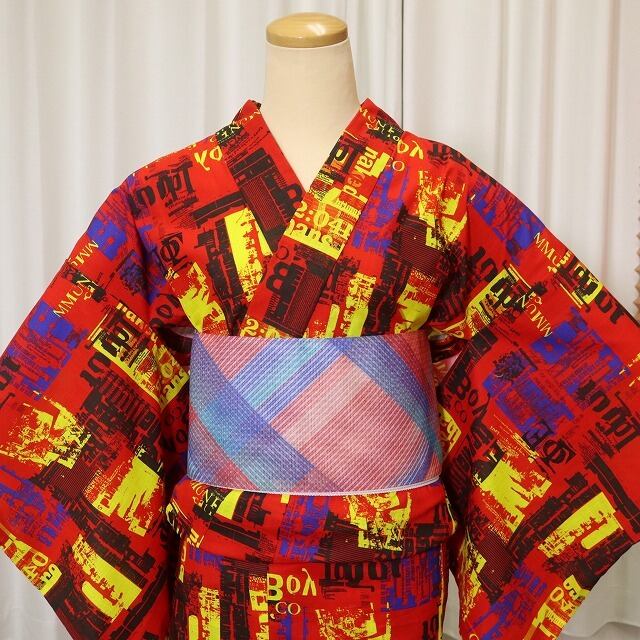 ★レディース浴衣 「ウォール」 ~ローブジャポニカ製~ フリーサイズのみの販売となり、画像にコーディネートされたその他の商品は含まれません。