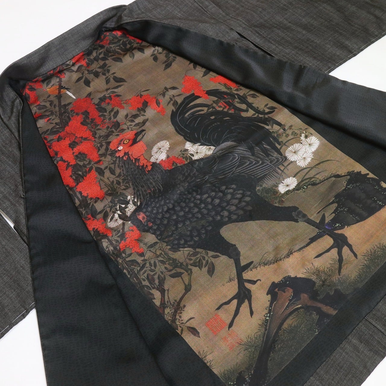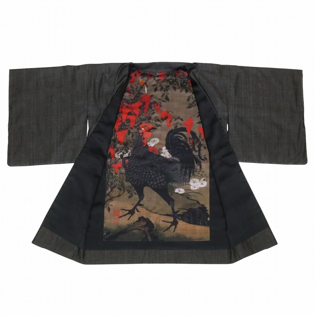 ★ブラックデニム羽織 / 羽裏→伊藤若冲・南天雄鶏図 <ゆめこもん特製>のみの販売となり、画像にコーディネートされたその他の商品は含まれません。