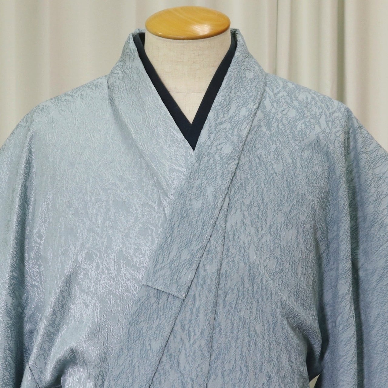 ★メンズ単衣着物 「ストレッチコードジャガード 片身替わり / ライトブルー」 ~ゆめこもん特製~ のみの販売となり、画像にコーディネートされたその他の商品は含まれません。