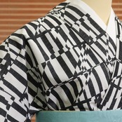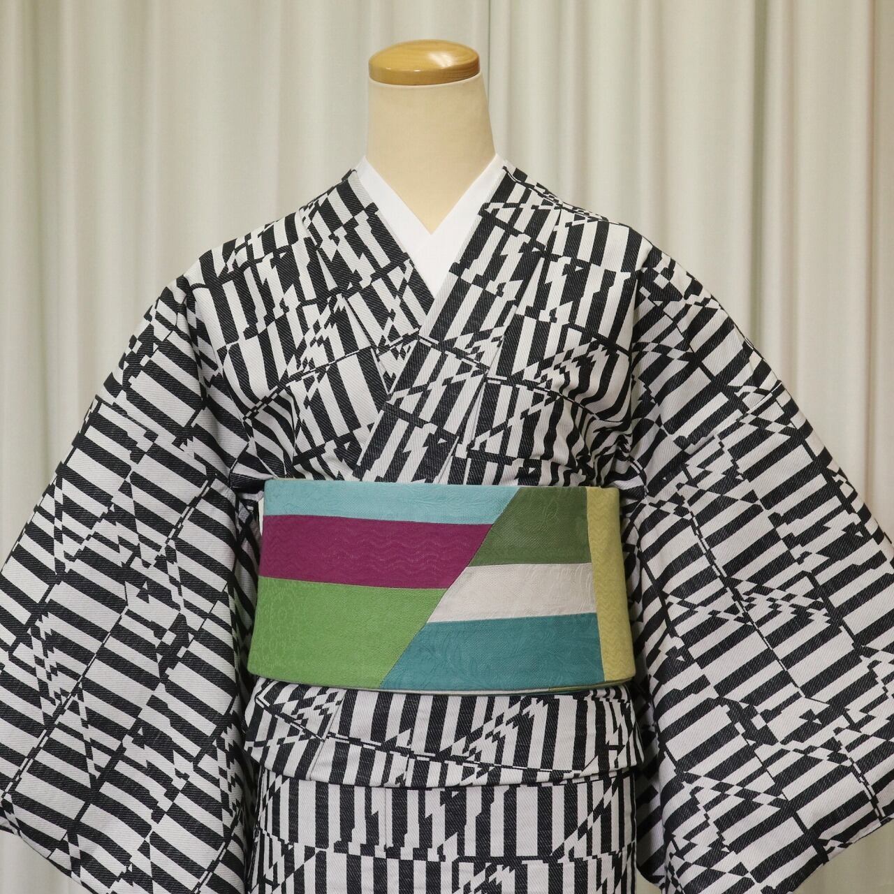 ★レディース単衣着物 「モノトーン 幾何学チェック」ジャガード織り ~ゆめこもん特製~ のみの販売となり、画像にコーディネートされたその他の商品は含まれません。