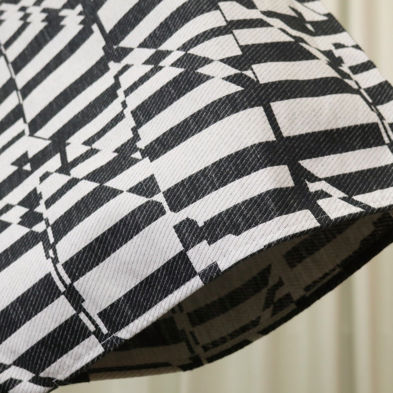 斬新なチェック柄が目を引きますが、色味を抑えたモノトーンなので全体が引き締まった印象になっています。
