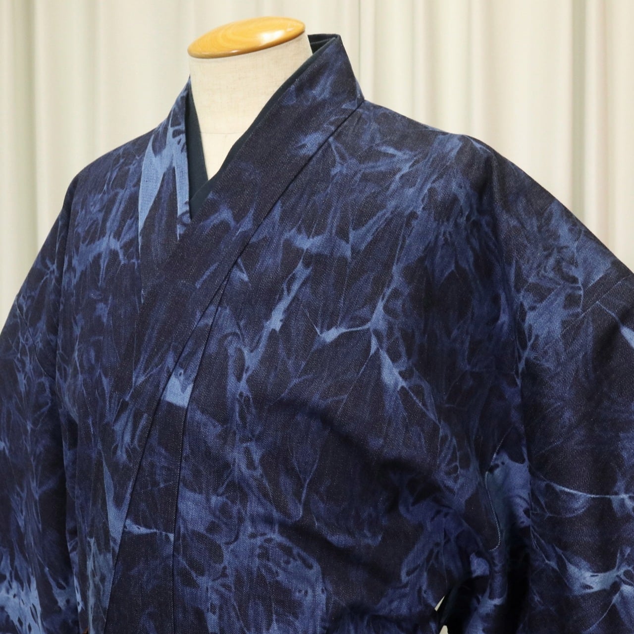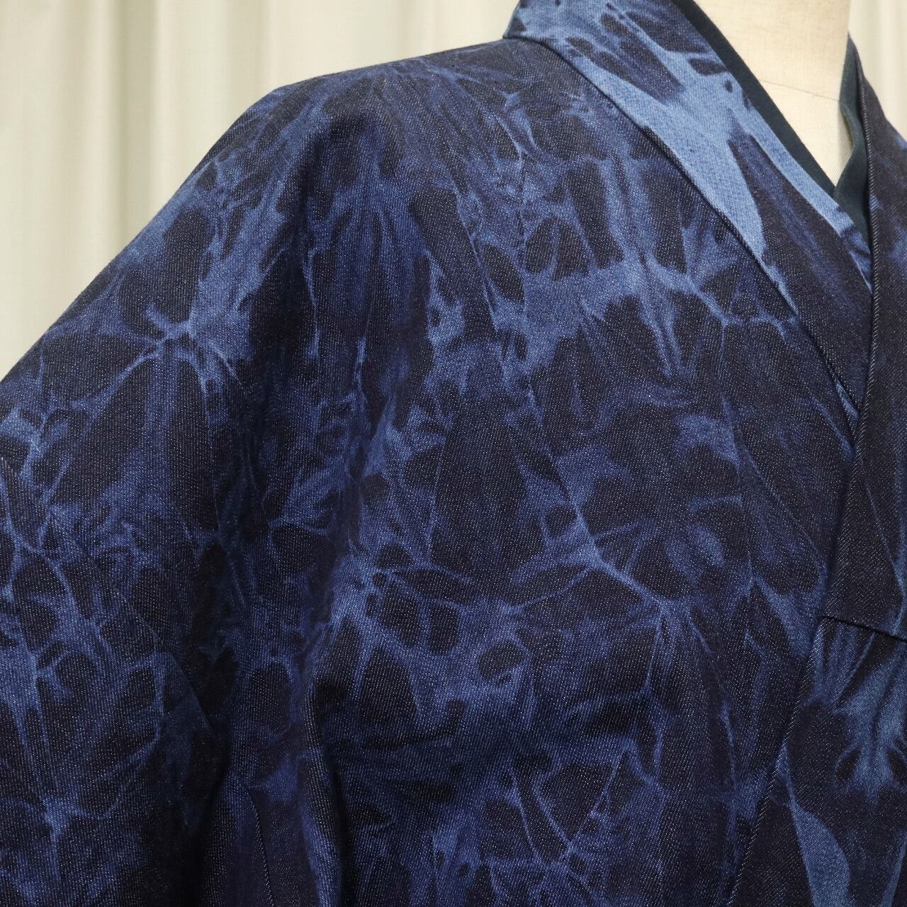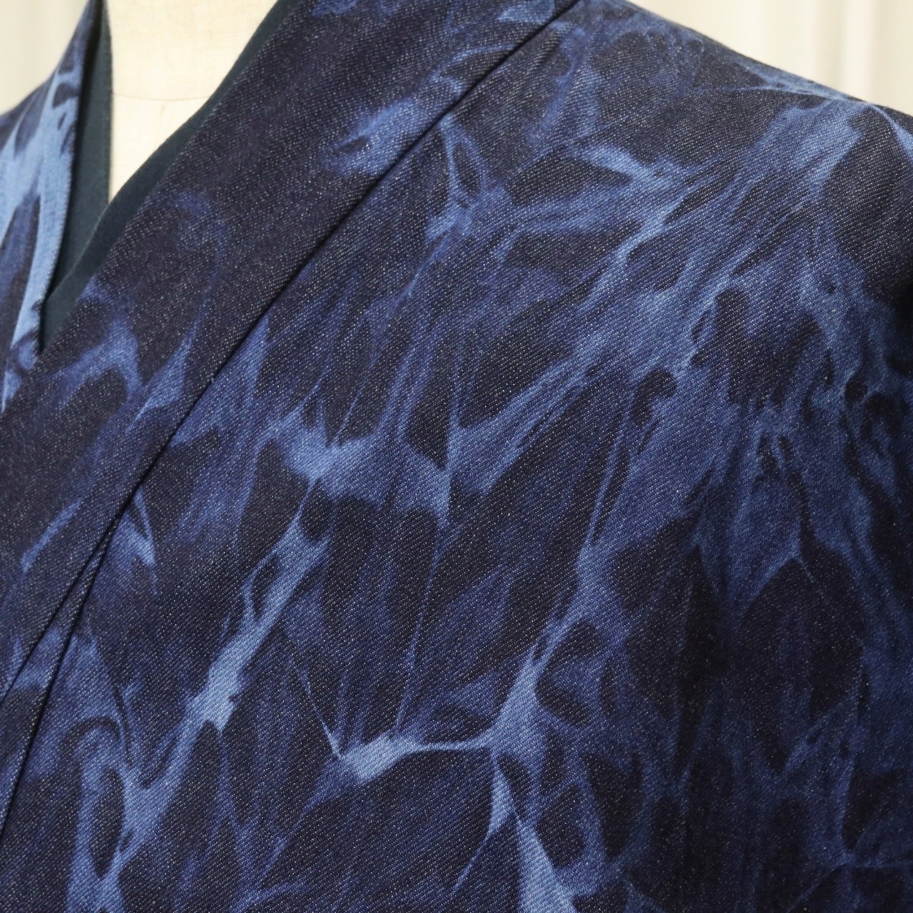 ★メンズ 岡山デニム着物 「かご染め風ブリーチ インディゴ」 ~ゆめこもん特製~のみの販売となり、画像にコーディネートされたその他の商品は含まれません。