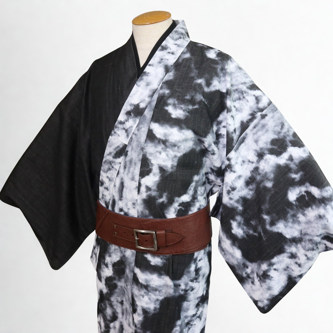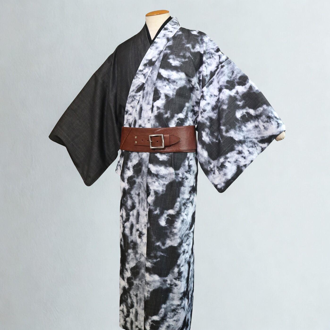 ★ この商品は【メンズデニム着物 「雲流」 片身替わり ゆめこもん特製 / 最新技術のインクジェットプリント】のみの販売となり、画像にコーディネートされたその他の商品は含まれません。